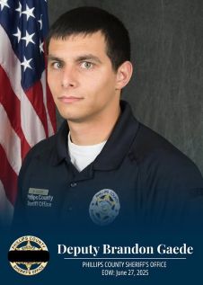 Brandon Pierce Gaede, age 30, began his career in law enforcement in 2013 as a jailer at the Thomas County Sheriff’s Office. In June 2017, he went to work as a Sheriff’s Deputy in Phillips County. On June 27, 2025, Phillips County Sheriff’s Office received multiple calls throughout the evening of reported explosions or loud booms, all in the same area. At 9:18pm, the Sheriff’s Office received another report of an explosion from the same area. Undersheriff Gaede, still in the area, observed smoke and made contact with a subject standing in the front yard of a residence. The subject admitted to setting off the explosive device. While Undersheriff Gaede attempted to make an arrest, the suspect drew a concealed revolver from his waistband and fired five rounds, critically wounding Undersheriff Gaede. Undersheriff Gaede was transported to a local hospital, where he passed away shortly after arrival. Undersheriff Gaede is survived by his wife Karley, children, Axel, Otto, Emilie, and his father Eric, mother Angie, and numerous other loving family members.